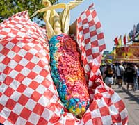 Get ready to EX-cite your tastebuds! The Canadian National Exhibition (CNE) is serving up an eclectic line-up of sugary confections, unexpected flavour combinations, and supersized portions of favourite fair foods. A giant foot-long samosa can only be outmatched at the CNE by a 15-inch diameter donut that is made for sharing (to eat) and for the ‘Gram. Also, deep-fried creations have gone wild this year with a deep-fried butter chicken lasagna, butter chicken corn dog, deep-fried pickle Oreos, deep-fried mozzarella sticks hot dogs, and even a spiral-cut pickle on a stick that is deep-fried and tossed with flamin’ hot Cheetos, or with crushed dill pickle chips.