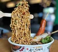 Be Super Fly while you slurp extra-large portions of “Floating” sauced instant noodles topped with your choice of protein and unlimited toppings.