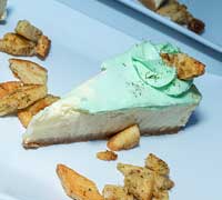 Made from scratch (and with love), this New York-style cheesecake is topped with tzatziki buttercream and pita chips. Opa!