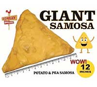 A heavy-weight champion in its class: Introducing the Giant Samosa measuring 12 inches and stuffed with potatoes and peas.