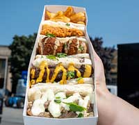 A new Food Truck vendor! Four sandwiches are better than one: Grilled chicken, fried chicken, beef sausage, and falafel sandwiches all served with a side of fries and Dukkah spice blend.